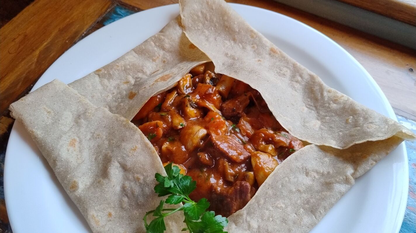 A marbled crepe with blackberries and white chocolate cream - £8.00