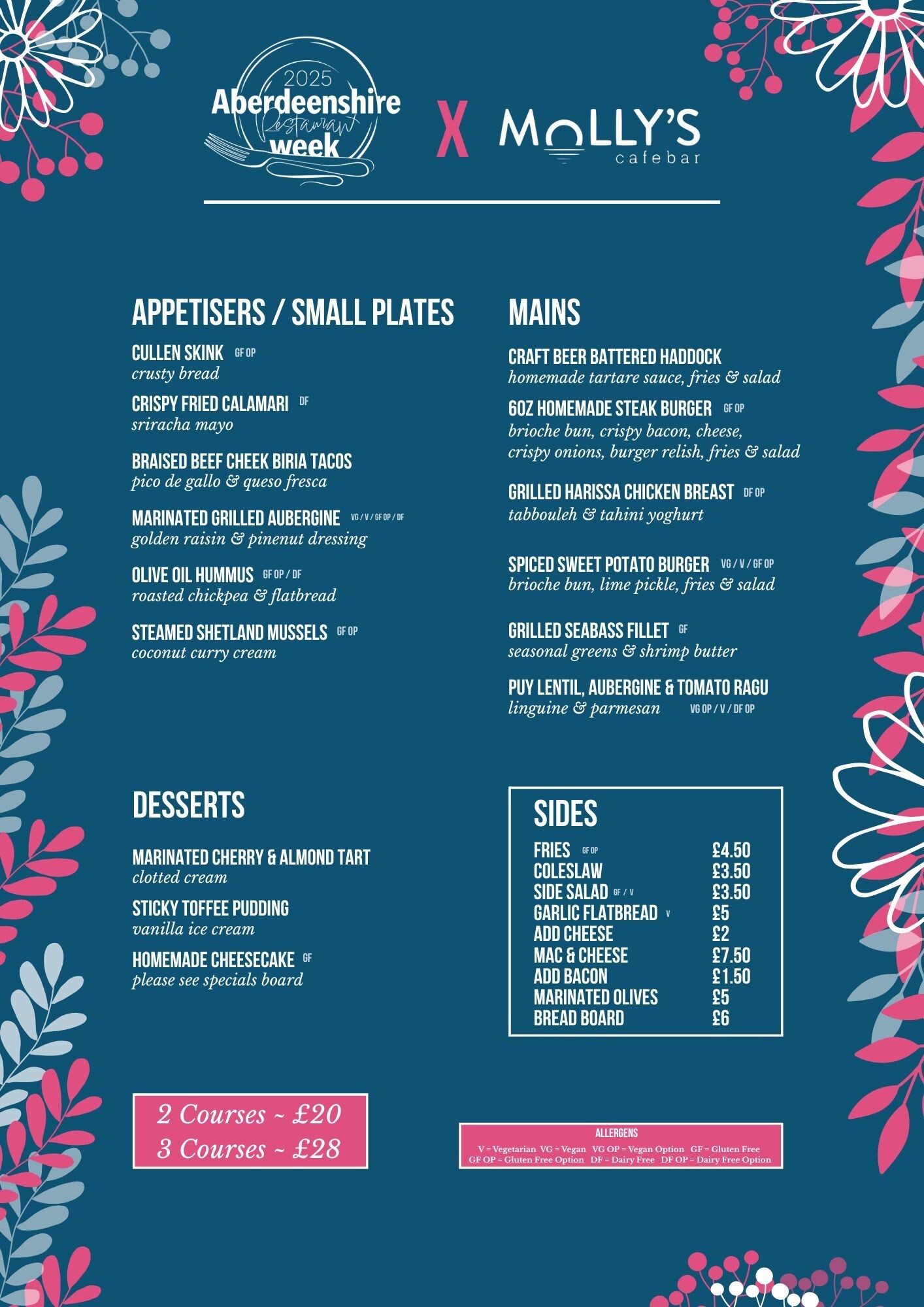 2 Courses for £20 / 3 Courses for £28