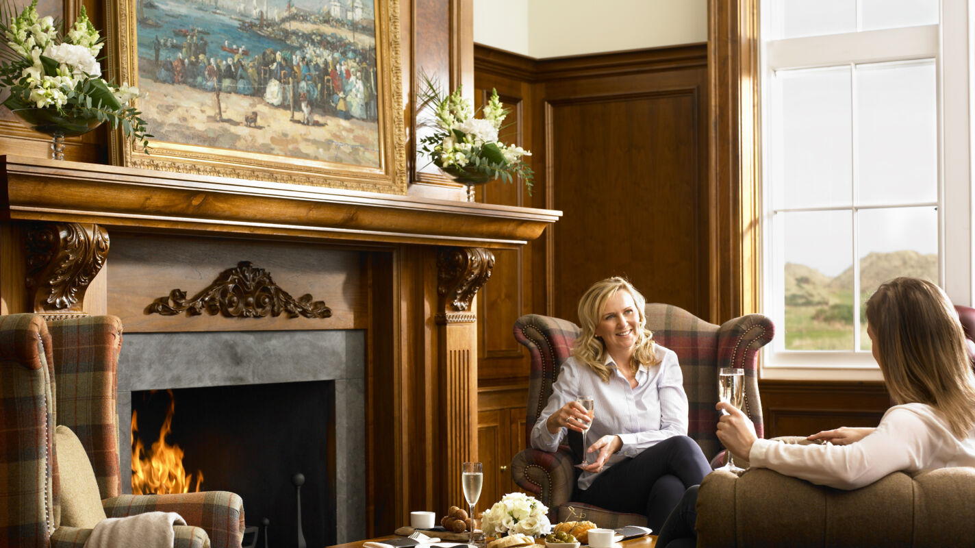 The Dunes Restaurant & Bar at Trump International is a comfortable, relaxed environment with rich walnut, leather seating, warming fireplaces and floor-to-ceiling windows offering stunning views across the Great Dunes of Scotland championship links course.